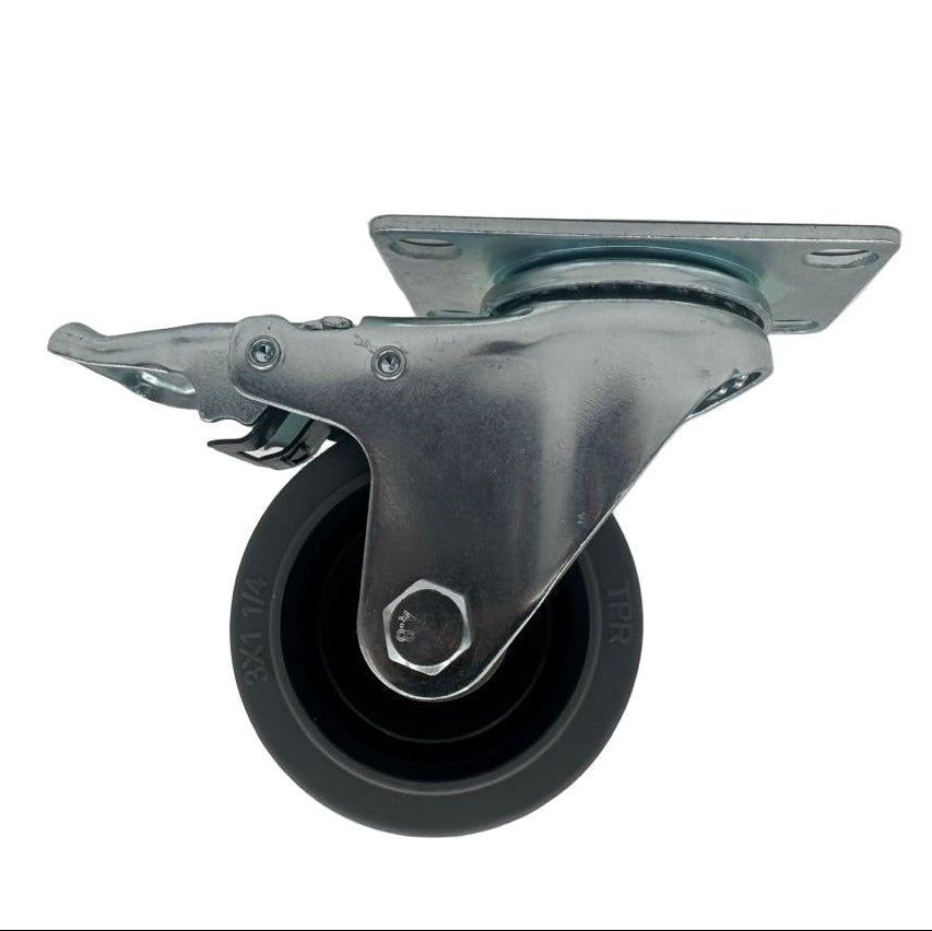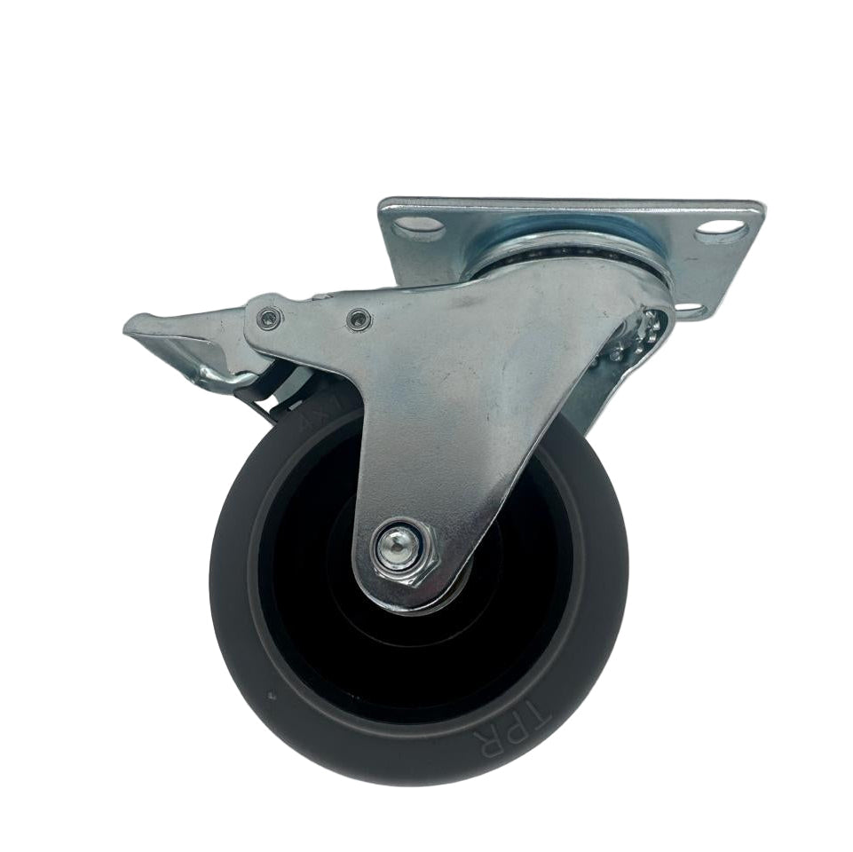 Rodajas industriales de uso pesado, antiestáticas y giratorias, con freno integrado. Su base plana permite instalación estable en maquinaria, ideales para disipar carga estática y soportar altas cargas con precisión continua.